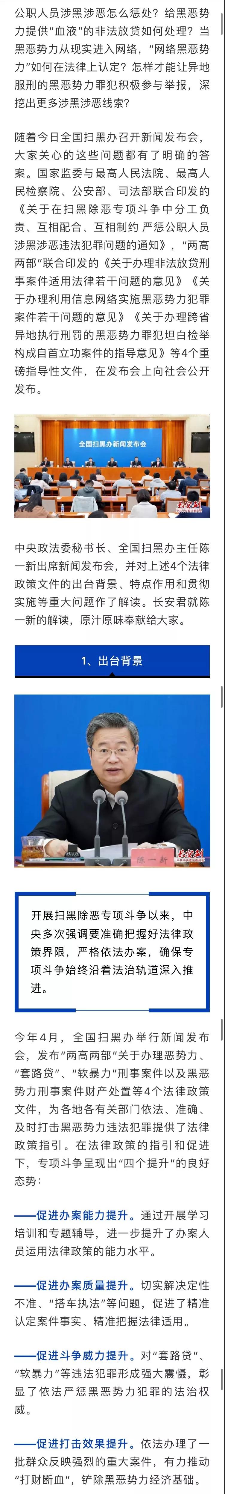 全国扫黑办再发布4个法律政策文件! 陈一新:确保专项斗争始终在法治轨道上运行