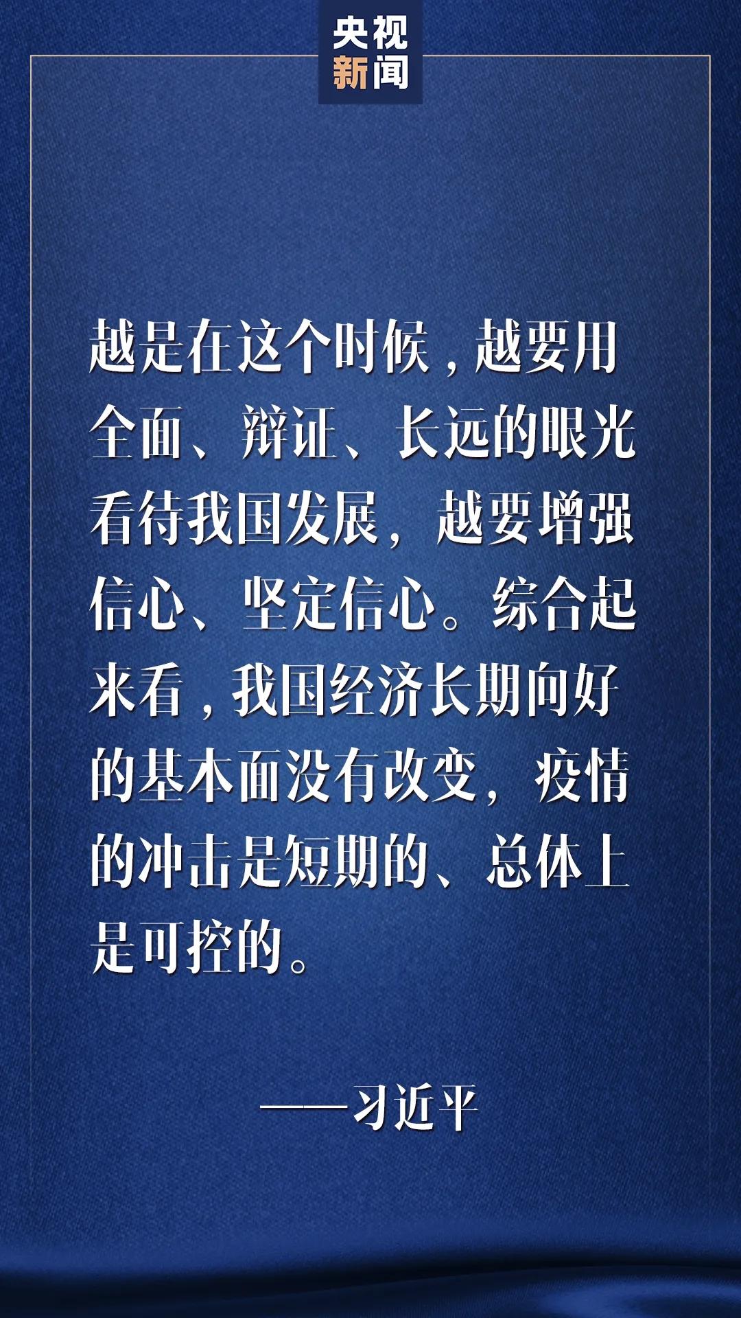 习近平指出,新冠肺炎疫情不可避免会对经济社会造成较大冲击。越是在这个时候,越要用全面、辩证、长远的眼光看待我国发展,越要增强信心、坚定信心。综合起来看,我国经济长期向好的基本面没有改变,疫情的冲击是短期的、总体上是可控的。习近平就有序复工复产提出8点要求。第一,落实分区分级精准复工复产。低风险地区要尽快将防控策略调整到外防输入上来,全面恢复生产生活秩序,中风险地区要依据防控形势有序复工复产,高风险地区要继续集中精力抓好疫情防控工作。第二,加大宏观政策调节力度。积极的财政政策要更加积极有为,继续研究出台阶段性、有针对性的减税降费政策,帮助中小微企业渡过难关。稳健的货币政策要更加注重灵活适度,用好已有金融支持政策,适时出台新的政策措施。第三,全面强化稳就业举措。要减负、稳岗、扩就业并举,针对部分企业缺工严重、稳岗压力大和重点群体就业难等突出矛盾,支持多渠道灵活就业,做好高校毕业生就业工作。第四,坚决完成脱贫攻坚任务。要努力克服疫情影响,狠抓攻坚工作落实,帮助贫困劳动力有序返岗,支持扶贫龙头企业、扶贫车间尽快复工,加快建立健全防止返贫机制。第五,推动企业复工复产。要落实分区分级精准防控策略,打通人流、物流堵点,放开货运物流限制,推动产业链各环节协同复工复产。要积极扩大国内有效需求,加快在建和新开工项目建设进度,加强用工、用地、资金等要素保障。第六,不失时机抓好春季农业生产。要抓紧解决影响春耕备耕的突出问题,组织好农资生产、流通、供应,确保农业生产不误农时。第七,切实保障基本民生。要保障主副食品供应,强化对困难群众的兜底保障,对患者特别是有亲人罹难的家庭要重点照顾。要统筹做好其他疾病患者医疗救治工作。第八,稳住外贸外资基本盘。要用足用好出口退税、出口信用保险等合规的外贸政策工具,保障外贸产业链、供应链畅通运转,抓好重大外资项目落地,扩大金融等服务业对外开放,继续优化营商环境,增强外商长期投资经营的信心。