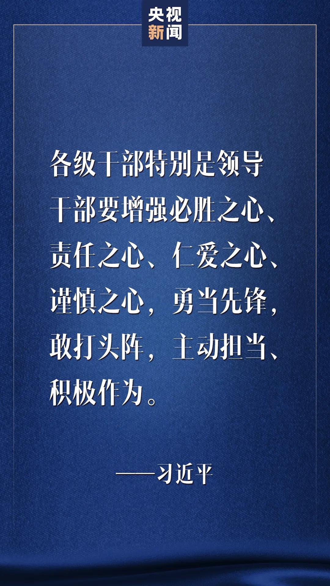 习近平指出,打好、打赢这场疫情防控的人民战争、总体战、阻击战,必须加强党对统筹推进疫情防控和经济社会发展工作的领导。各级党组织要认真履行领导责任,特别是抓落实的职责,把党中央各项决策部署抓实抓细抓落地。各级干部特别是领导干部要增强必胜之心、责任之心、仁爱之心、谨慎之心,勇当先锋,敢打头阵,主动担当、积极作为。要在斗争一线考察识别干部,对表现突出的干部要大力褒奖、大胆使用,对不担当不作为、失职渎职的要严肃问责,对在斗争一线表现突出的先进集体和个人,要根据情况分层分级予以表彰和嘉奖。要关心关爱广大基层干部和深入基层的各级干部特别是湖北、武汉等疫情严重地区的干部群众,及时帮助他们解决遇到的实际困难和问题,坚决纠正形式主义、官僚主义做法。要推动防控资源和力量下沉,充分调动社会力量共同参与疫情防控。要针对这次应对疫情中暴露出的明显短板,总结经验、吸取教训,提高应对突发重大公共卫生事件的能力和水平。