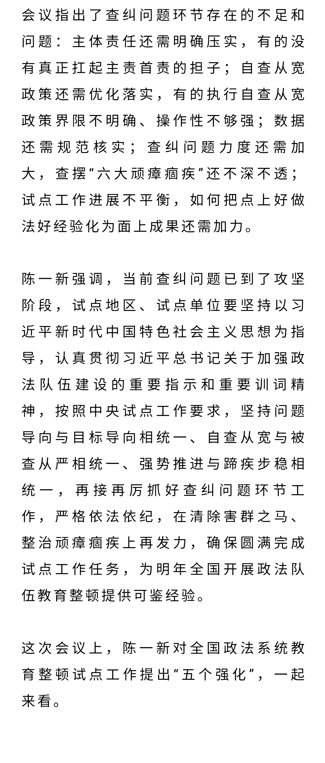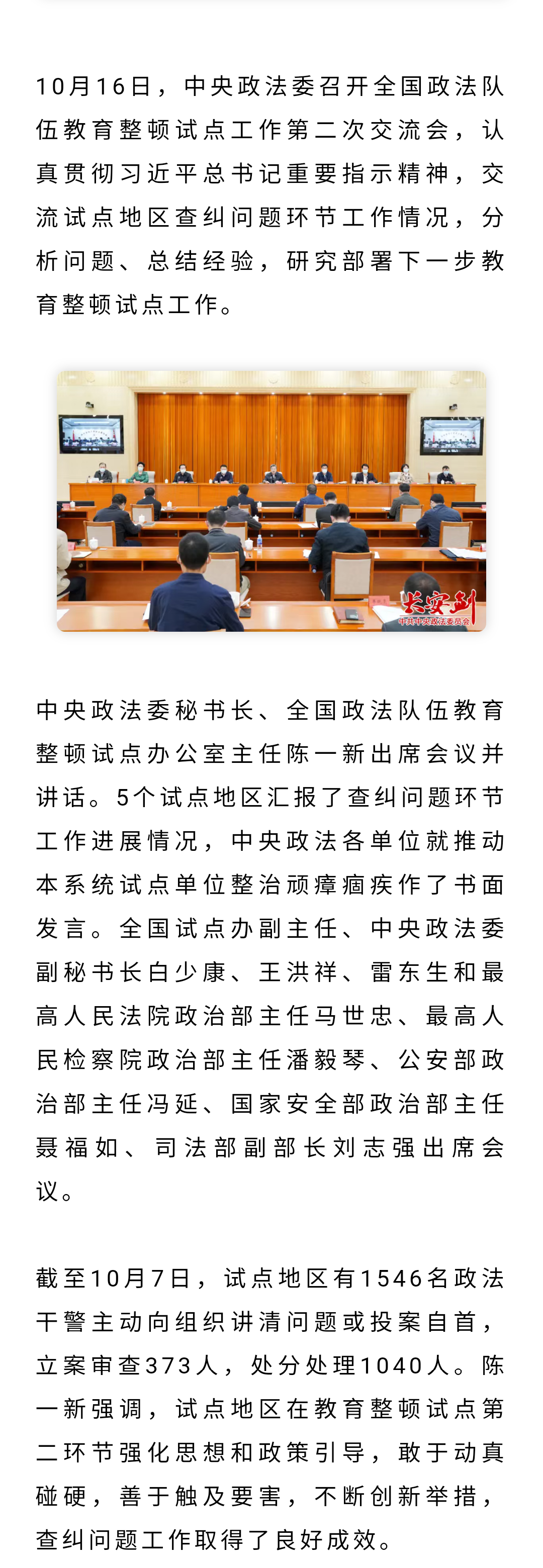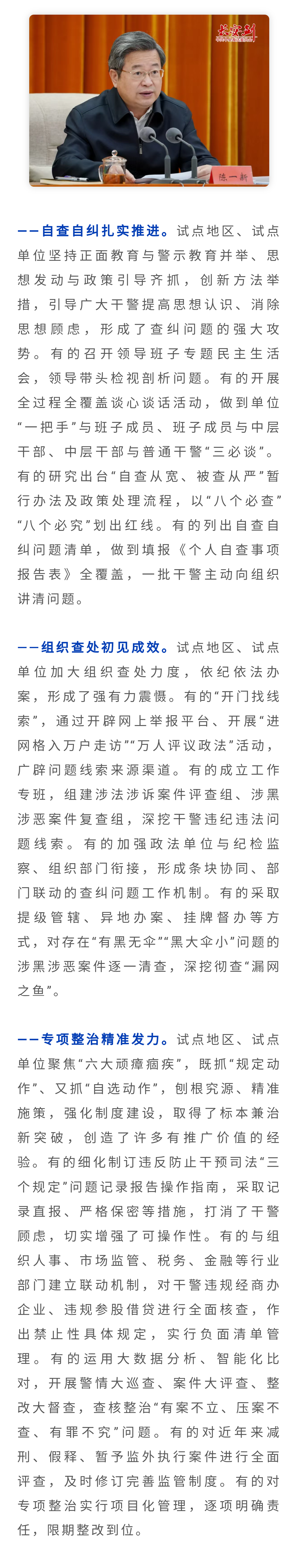 陈一新:自查从宽、被查从严,政法队伍教育整顿试点进入查纠问题攻坚期