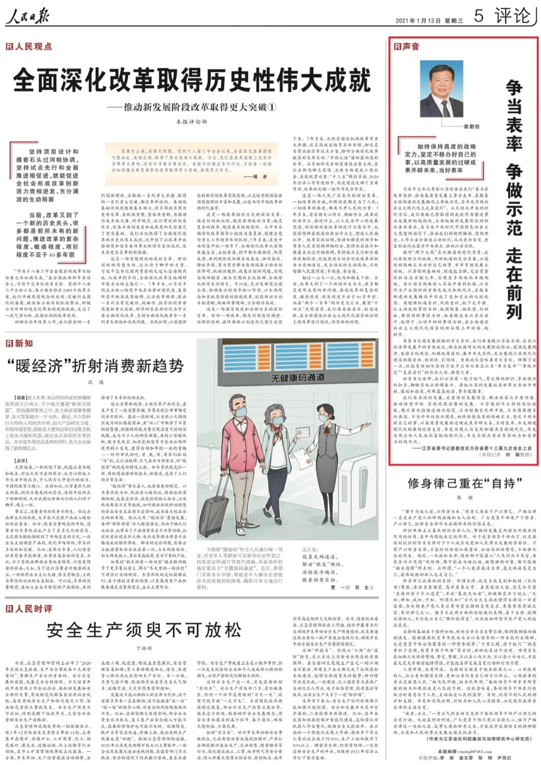——江苏省委书记娄勤俭近日在省委十三届九次全会上说