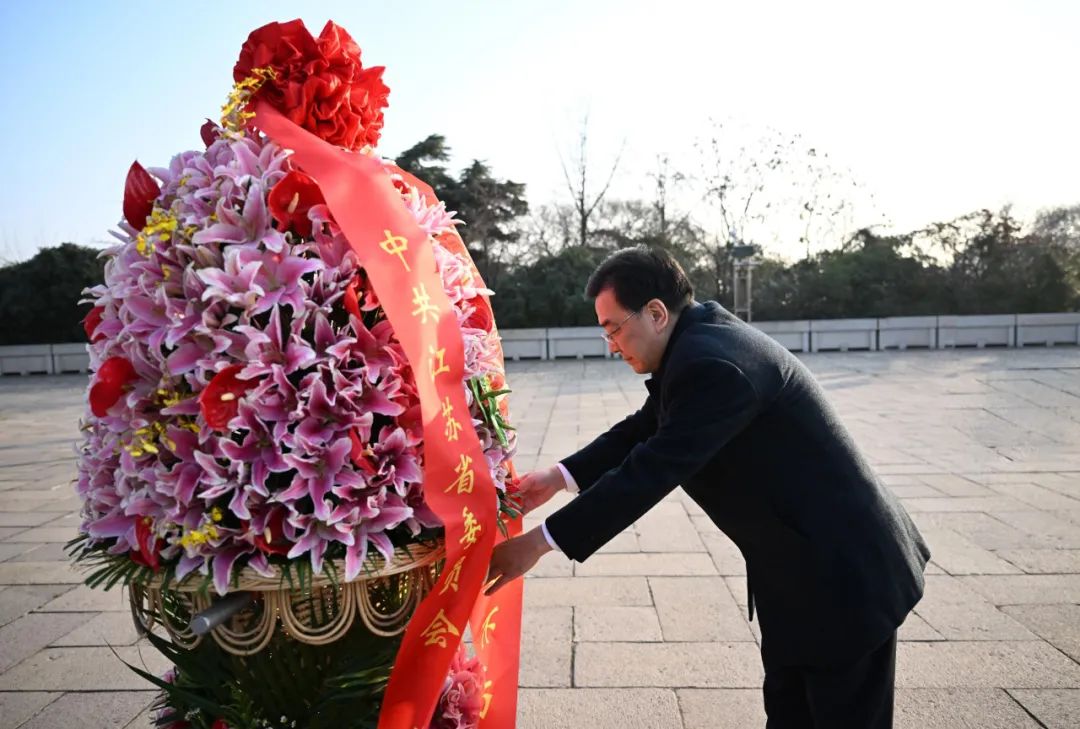 1月4日上午,省委书记信长星到雨花台烈士陵园,缅怀革命先烈,铭记奋斗历程,感悟初心使命。他强调,要大力弘扬伟大建党精神,赓续红色血脉、传承红色基因,筑牢信仰信念、凝聚奋进力量,坚定拥护“两个确立”、坚决做到“两个维护”,以斗争精神迎接挑战、以奋进拼搏开辟未来,在新征程上全面推进中国式现代化江苏新实践,努力创造无愧于历史、无愧于人民的新业绩。