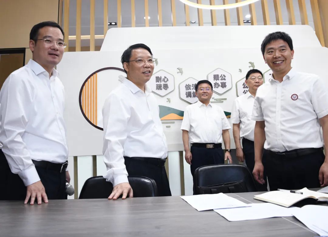 1日上午的现场参观阶段,刘建洋首先来到泗阳县社会治理服务中心,认真听取工作汇报,细致了解中心化解调处社会矛盾纠纷工作流程,强调要坚持以党建为引领,健全政法、社会、群众等各种力量共同参与社会治理的工作机制,不断提升社会治理效能。