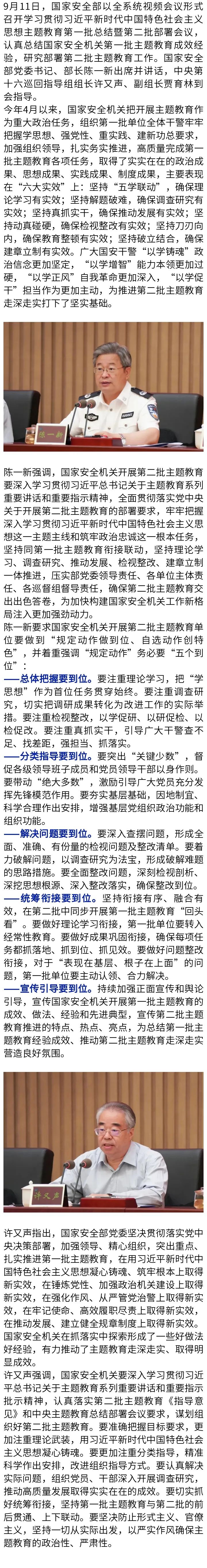 国家安全部主题教育第一批总结暨第二批部署会议强调 总结“六大实效” 做到“五个到位” 陈一新讲话