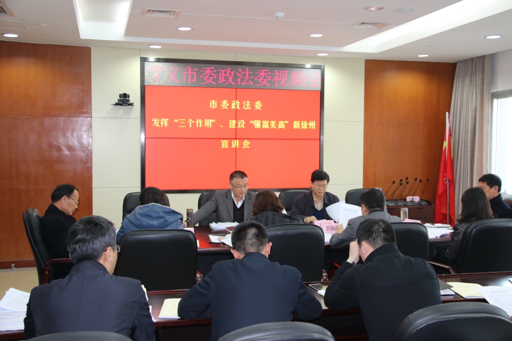2月13日下午,市委政法委组织召开委机关全体人员开展“发挥‘三个作用’、建设‘强富美高’新徐州”宣讲,副书记吕伟主持会议并进行宣讲。