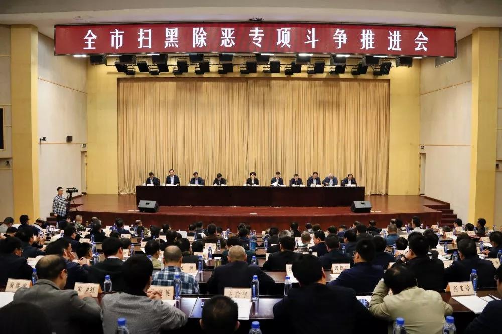 为深入学习贯彻全国、全省扫黑除恶专项斗争推进会精神,研究筹备迎接中央督导组“回头看”相关工作,10月25日上午,全市扫黑除恶专项斗争推进会在市行政中心小礼堂举行。会议由市委副秘书长侯广彬主持,市委常委、政法委书记韩冬梅、市中级人民法院院长花玉军、市人民检察院检察长韩筱筠出席会议。