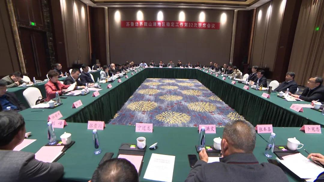 11月11日,苏鲁边界微山湖地区稳定工作第32次联席会在沛县召开,徐州市委常委、市委政法委书记韩冬梅,济宁市委常委、市委政法委书记张辉出席会议并讲话。
