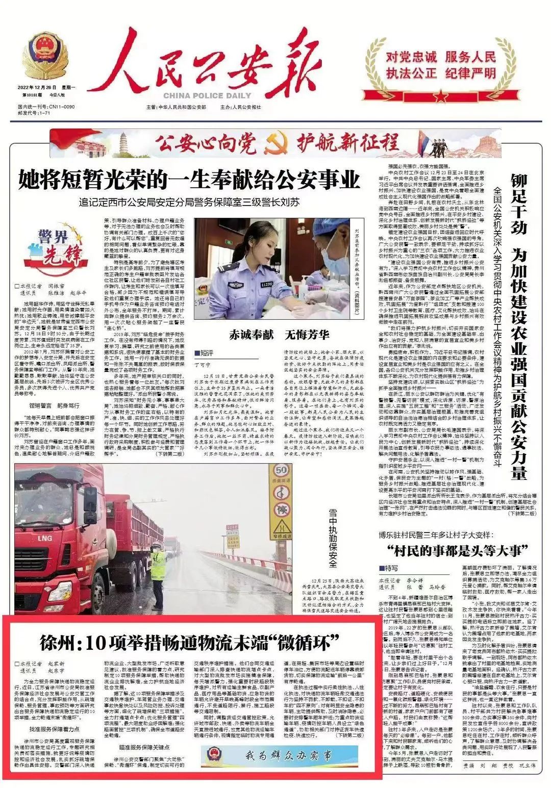 严格落实保障物流畅通、促进产业链供应链稳定工作要求,对重点物资运输车辆,实行交管业务“特事特办”、开通专门窗口,提供集中办理、上门办理、延时办理等服务。同时,开设重点物资运输“绿色通道”,协助相关部门对持证货车快速检疫、快速放行,最大限度保障通行便利。