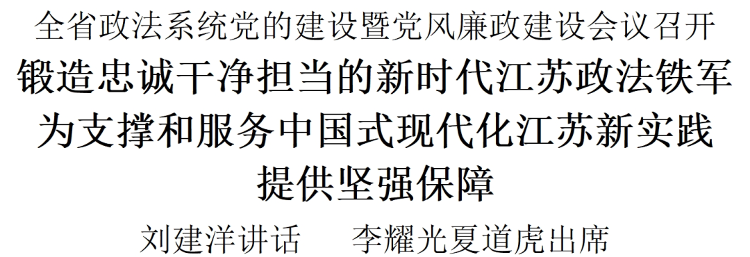 4月2日,全省政法系统党的建设暨党风廉政建设会议在南京召开。会议坚持以习近平新时代中国特色社会主义思想为指导,深入学习贯彻习近平总书记关于党的建设、党的自我革命重要思想,深入学习贯彻习近平总书记对政法工作、江苏工作重要指示精神,贯彻落实中央、省委关于全面从严治党的部署要求,总结工作、分析形势、部署任务,着力锻造忠诚干净担当的新时代江苏政法铁军,为奋力推进政法工作现代化,支撑和服务中国式现代化江苏新实践提供坚强保障。省委常委、省委组织部部长、省委政法委书记刘建洋出席会议并讲话,副省长、省公安厅厅长李耀光主持会议,省法院院长夏道虎参加会议,省委政法委常务副书记梁一波通报了违纪违法干警典型案例,省监委相关负责同志到会指导并作专题报告。