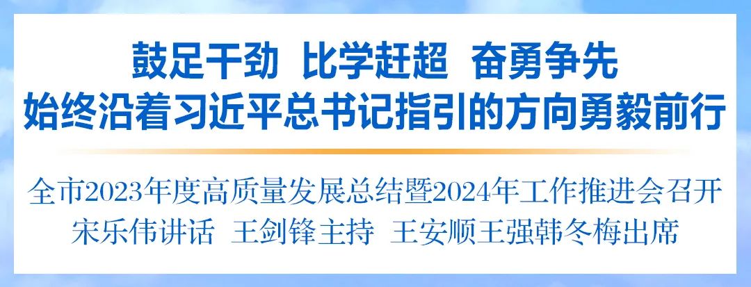 4月6日,全市2023年度高质量发展总结暨2024年工作推进会召开,深入学习贯彻党的二十大精神和习近平总书记对江苏工作重要讲话重要指示精神,认真落实省委部署要求,总结成绩、表彰先进,动员全市上下以时不我待、分秒必争的紧迫感,鼓足干劲、比学赶超、奋勇争先,奋力谱写“强富美高”新徐州现代化建设新篇章。市委书记宋乐伟出席并讲话,市委副书记、市长王剑锋主持,市人大常委会主任王安顺、市政协主席王强出席会议。市委副书记、政法委书记韩冬梅通报全市2023年度高质量发展综合考核结果。