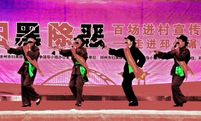 为深入推进扫黑除恶专项斗争,充分调动和激发广大人民群众参与扫黑除恶专项斗争积极性、主动性,徐州市扫黑除恶专项斗争领导小组办公室精心筹划,精准发力,创新发动全社会动员机制,在营造扫黑除恶强大声势上实现了新的突破,专门组建了扫黑除恶宣传队开展“走千村、进万户”集中宣传活动,第一站走进了邳州。通过法制文艺演出、典型案例解读、有奖知识问答等形式,强力开辟农村扫黑除恶主战场,传递党中央开展扫黑除恶专项斗争坚定的信心和决心。