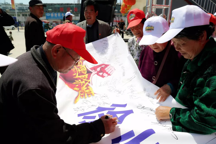宣传队所到之处,参与群众热情高涨,近千名群众参加了扫黑除恶万人签名仪式,纷纷表示要积极投入到专项斗争中,坚决同黑恶势力违法犯罪作斗争,坚决打赢扫黑除恶这场硬仗。