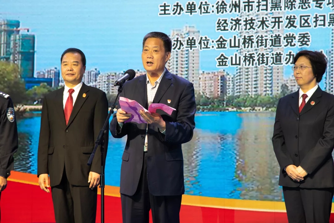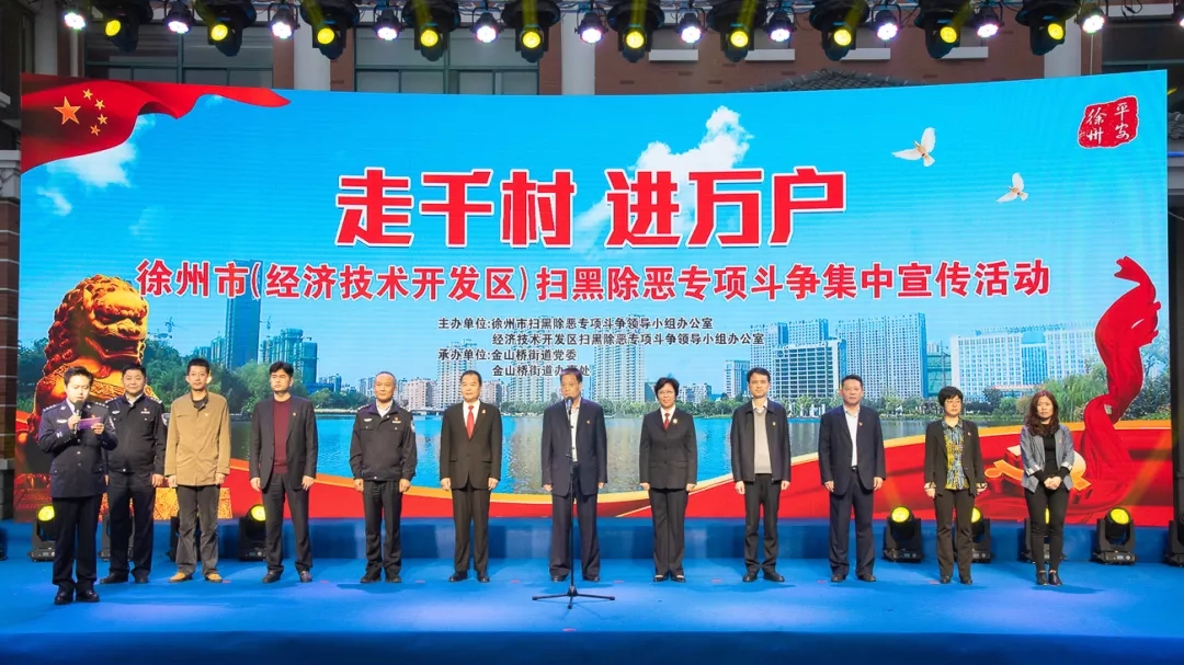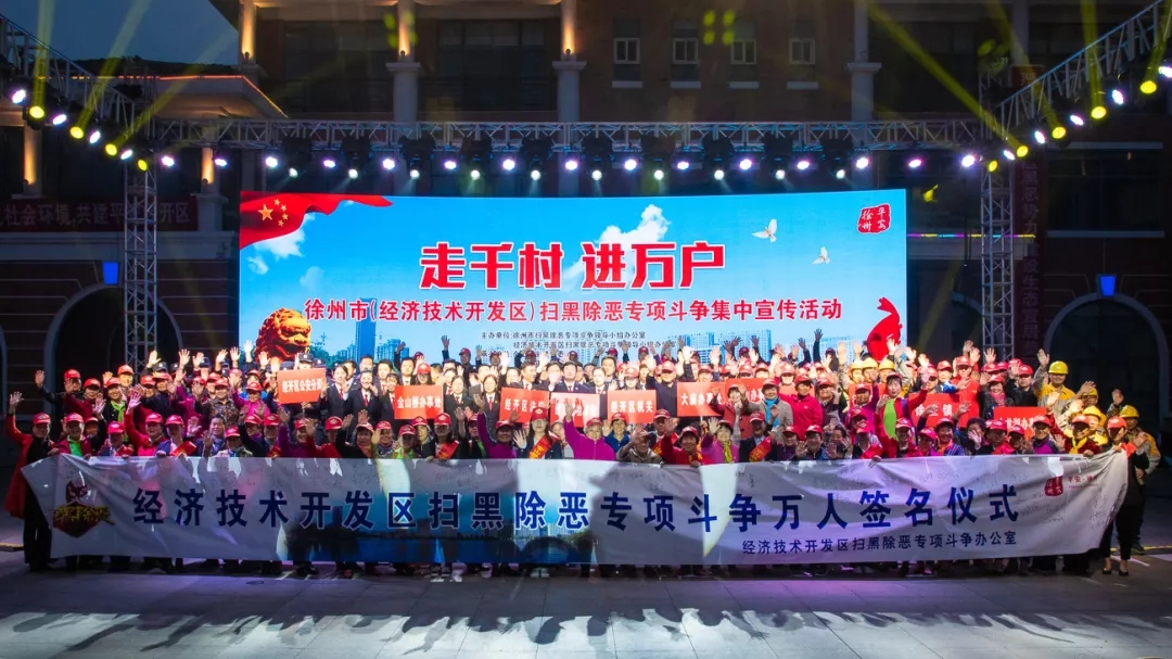 4月30日晚,徐州经济技术开发区党工委、管委会为进一步宣传党和政府打击黑恶势力的坚定决心,在全社会广泛动员、层层发动,以壮大扫黑除恶声势,形成强大的打击合力,营造全民动员、全民知晓、全民参与的扫黑除恶氛围,在区怡园法制文化广场举办了扫黑除恶专项斗争集中宣传活动。