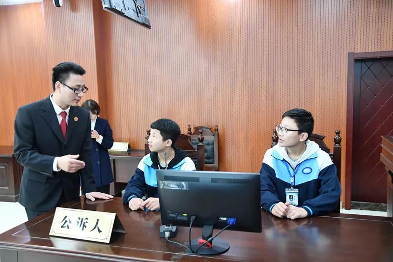 在诉讼服务中心,立案庭刘庭长向大家介绍了诉讼的基本常识以及网上立案等便民举措;随后同学们依次参观了民事审判法庭、少年家事审判庭等场所,并兴致勃勃地参加了模拟庭审活动。