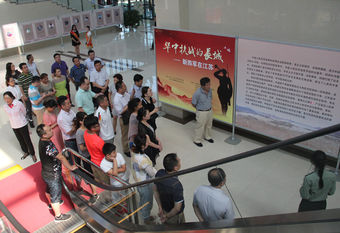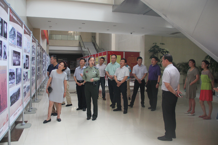 7月12日,市委政法委全体党员来到市档案馆参观“华中抗战的长城——新四军在江苏”图片展。