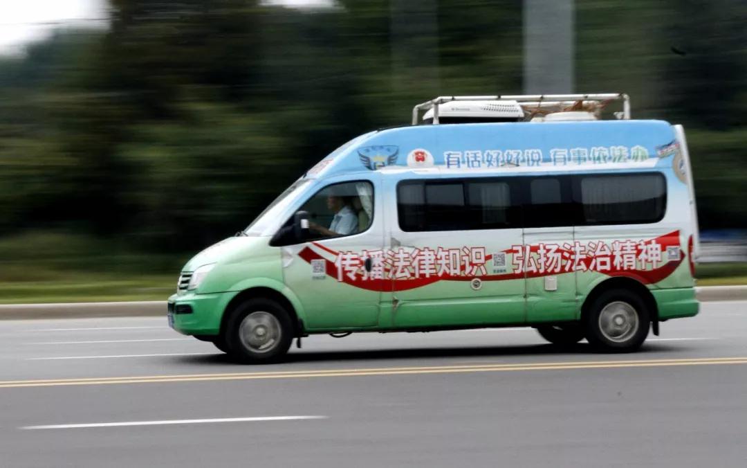 随后,他自掏腰包购买了一辆二手面包车,在报请交警部门同意后,稍加改造后踏上了全国巡回普法宣传。