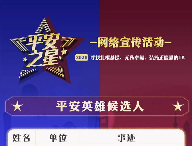 由中国长安网、中央政法委长安剑主办,联动各大新兴网络平台开展的“平安之星网络宣传活动”正在火热进行中。12月最新一轮“平安之星”候选人名单公布,其中,徐州1人入选“平安英雄”候选人。投票等活动将近期展开,敬请关注。