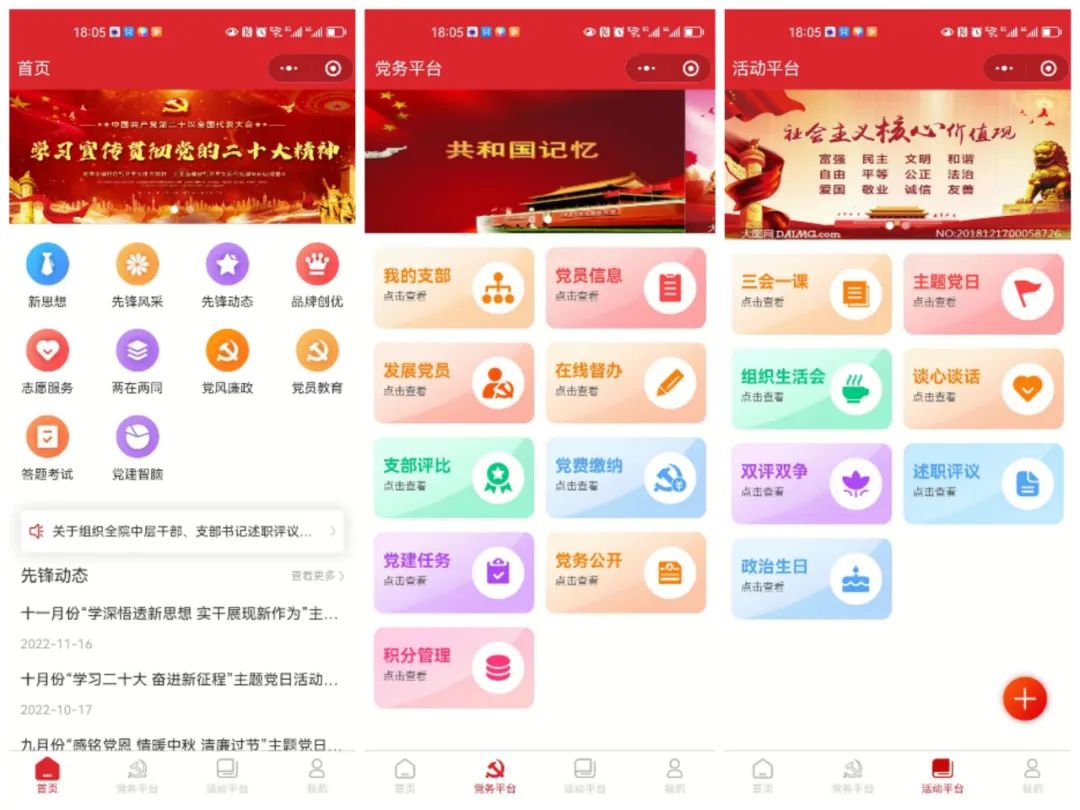 智慧党建系统将传统党建工作与信息技术深度融合,打造“云教育、云管理、云记录”功能,以“联网上云”推动“融入式”党建取得进一步创新发展,实现党员教育便捷化、党务管理智能化、党建品牌数字化,促进党建服务载体多元灵活、党建与业务互动融合、队伍整体素质有效提升。
