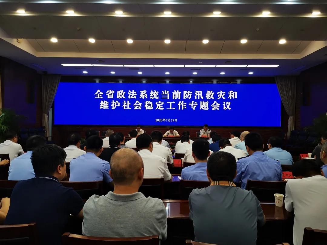 当前防汛形势异常严峻,全省政法机关要坚决贯彻习近平总书记重要讲话精神,按照省委、省政府部署要求,增强“四个意识”、坚定“四个自信”、做到“两个维护”,牢固树立全局一盘棋思想,切实担负起促一方发展、保一方平安的政治责任。要始终把保障人民群众生命财产安全放在第一位,充分发挥政法系统职能作用,积极参与防汛救灾工作。主动配合做好险情排查工作,深化运用“大数据+网格化+铁脚板”治理机制和政法机关党员干部下沉第一线、当好“八大员”等有效做法,充分发挥广大干警和网格员作用,积极配合有关部门做好重要堤防、重要设施排查巡查等工作,及时发现险情,第一时间发出预警信息。充分做好应急准备工作,进行全警动员,完善应急预案,开展抢险培训和演练,安排充足警力备勤,做好思想、组织、预案、力量的充分准备。全力做好抢险救援工作,一旦遇到灾情,各级政法机关特别是公安机关要在地方党委政府统一领导下,全力以赴投入抢险救援工作,尽最大努力保障人民群众生命财产安全。