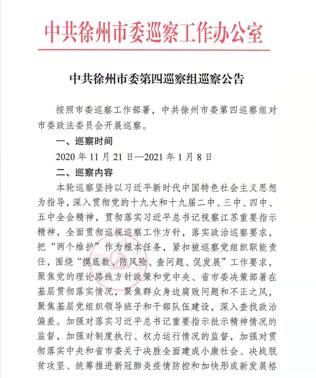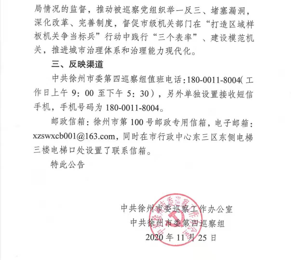 中共徐州市委第四巡察组巡察公告