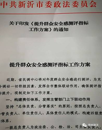 10月份以来,新沂市委常委、政法委书记邢会义高度重视群众安全感提升工作,多次亲自研究部署,制定并落实提升公众安全感工作方案及具体措施,强化责任落实。新沂由点到面、次第展开,夯实七项关键举措,纵深推进群众安全感提升。