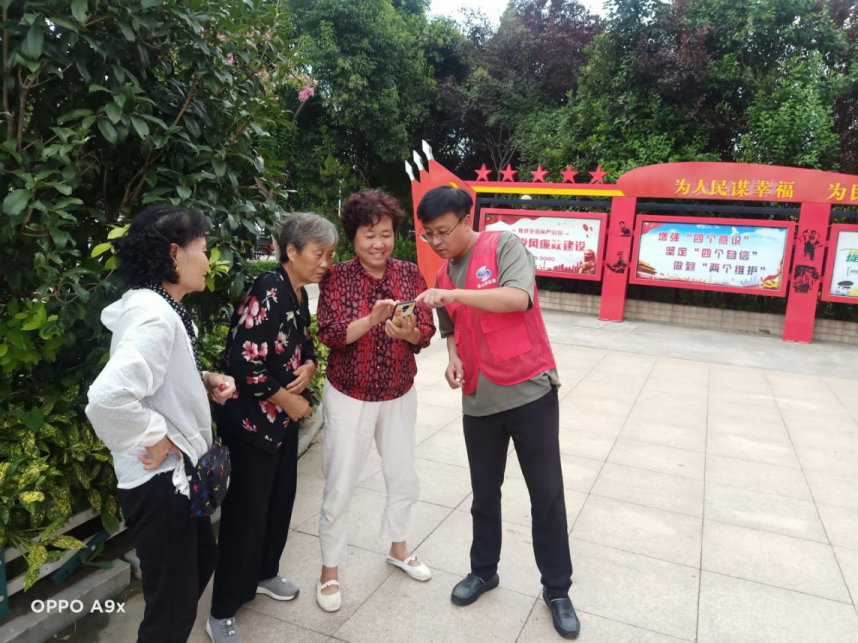 这是在石桥社区的居民广场上发生的一段对话,两位大姨正热火朝天地讨论着手机上的积分。她们嘴里说到的积分,正是近期在金山桥街道掀起一股热潮的“平安细胞”工程APP的积分。