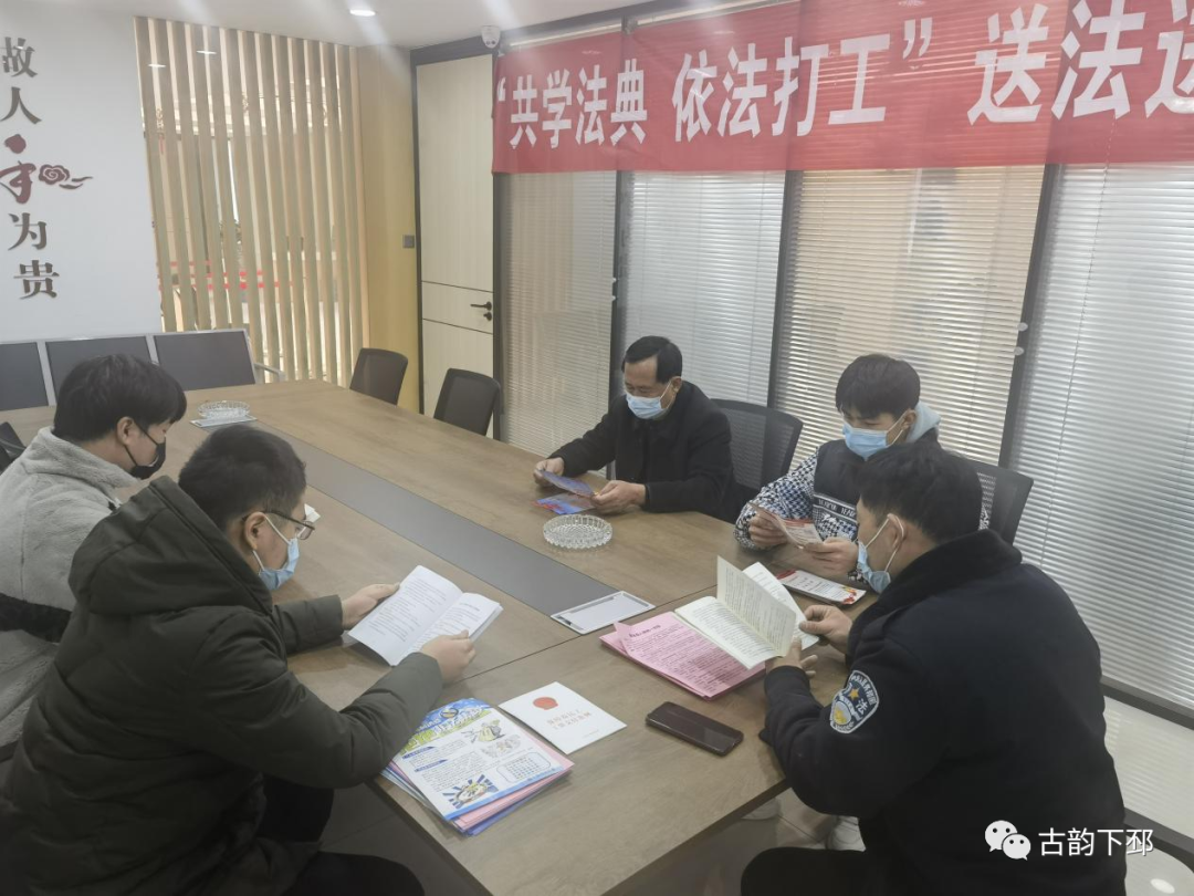 为确保普法成效双倍提升,古邳司法所从用工方和劳动方双向着手,组织普法宣传队伍走进辖区企业,与企业负责人和工人等进行面对面交流,宣传劳动法政策法规知识,赠送相关法治书籍,并深入车间询问农民工生活、就业情况,了解他们的法治需求,普及基础法治维权意识;在辖区的公共场所、办事大厅滚动播放“农民工学法活动周”相关宣传标语,营造了浓厚学法氛围。